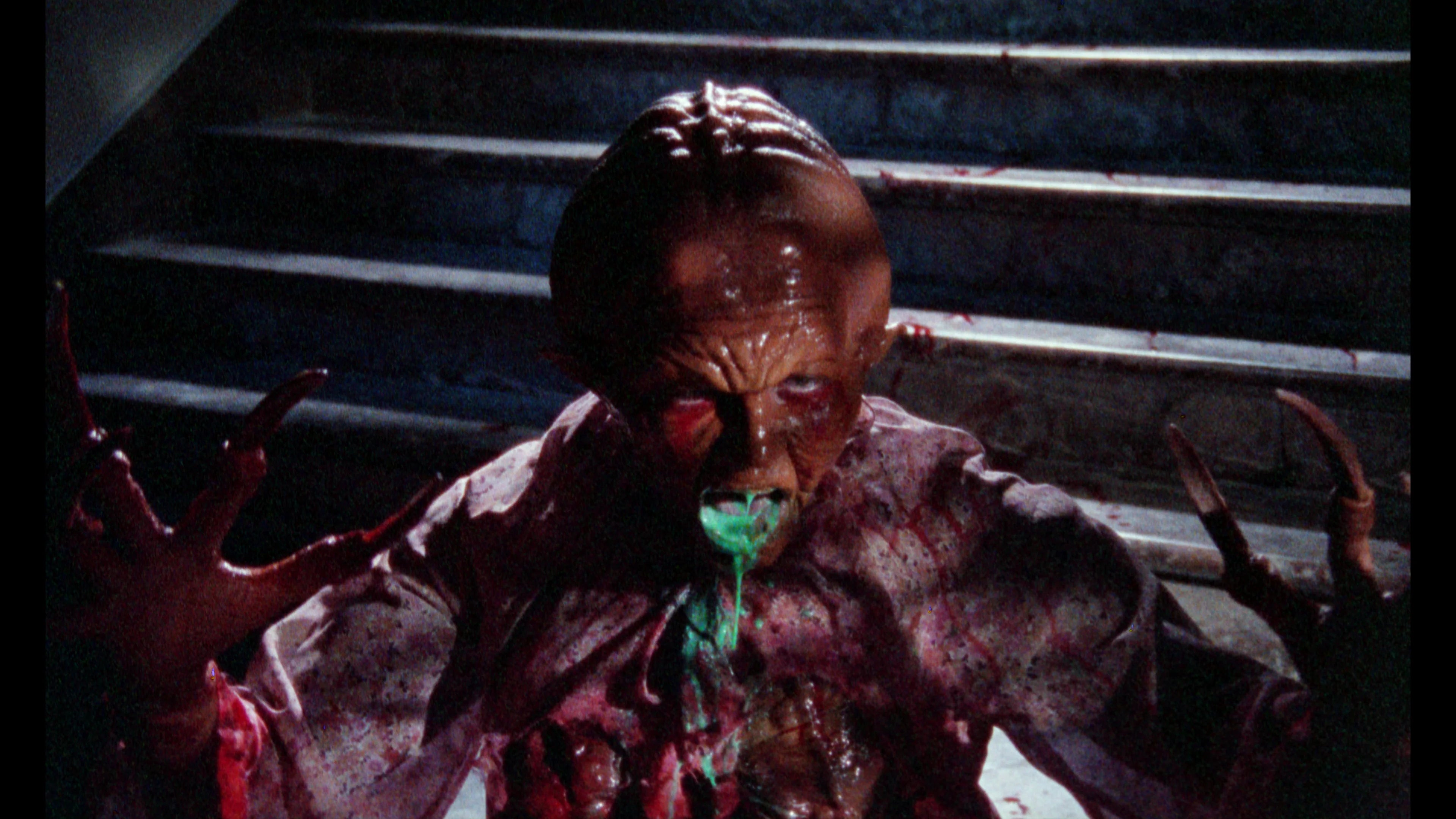 One of the few feature-length horror movies to emerge from Belgium in the 1980s, Emmanuel Kervyn’s RABID GRANNIES was a passion project for producer Johan Vandewoestijne (who had previously helmed the corpse-loving serial killer shocker Lucker the Necrophagus), and serves as the Flemish answer to the early splatter films of Peter Jackson (Bad Taste, Dead Alive). Packed with histrionic performances, gloriously atrocious dubbing and wall-to-wall gore gags - including head chomping, bodies slammed into railings, copious limbs being lopped off and even a spot of child mutilation, all served up via ultra stylized photography and with a deliciously black comedic streak. Most often seen in a heinously edited version which removed much of its over-the-top gore, the black sheep of boutique film distribution, Vinegar Syndrome, have seen fit to resurrect RABID GRANNIES for its uncut Blu-ray premiere, now newly restored in 4K from original 35mm film elements - and appearing in its longest version ever released in the US - complete with a wealth of both new and archival extras, including a feature-length documentary about the history of Flemish horror.