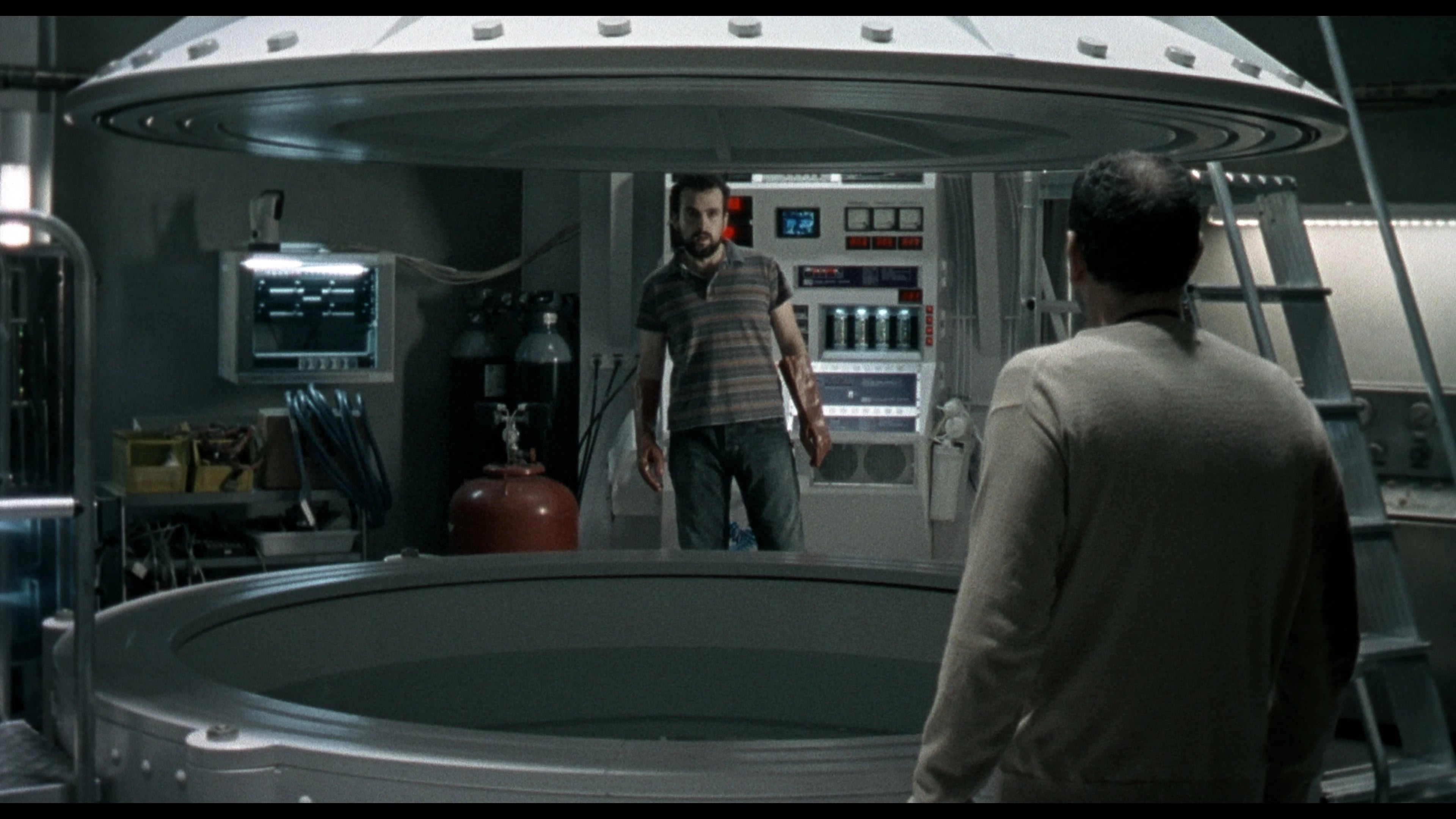 Héctor (Karra Elejalde) lives with his wife Clara (Candela Fernández) in the peaceful Spanish countryside. One day, while relaxing in their backyard, Héctor spies a woman removing her clothes in a nearby forest via his binoculars. Once alone, he travels to her location to find the woman naked and presumably dead. He is attacked by an unknown, bandaged man, causing him to run further into the forest, where he stumbles upon a top-secret research facility, which happens to be home to a time machine. Upon meeting El Joven (played by director Nacho Vigalondo), a scientist in control of the facility and its machine, Héctor travels back in time one hour. Operating against El Joven’s wishes, Héctor leaves the facility, setting off a series of events with increasingly dark consequences.